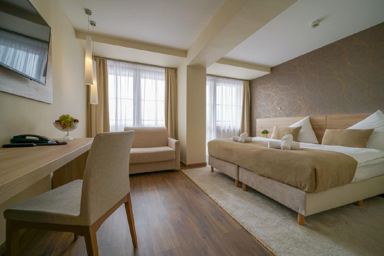 A hegyekre vagy a völgyre néző Exkluzív Junior Apartman egy modern, tágas, elegáns berendezésű apartman, melyben egy king-size ágy és két pótágy található felnőtt vagy gyermek részére. A külön fürdőszobában kád vagy zuhanyzó és WC található. Alapfelszereltség: íróasztal székkel, szekrények, telefon, széf, minibár, beépített hajszárító, műholdas TV és Wi-Fi kapcsolat.